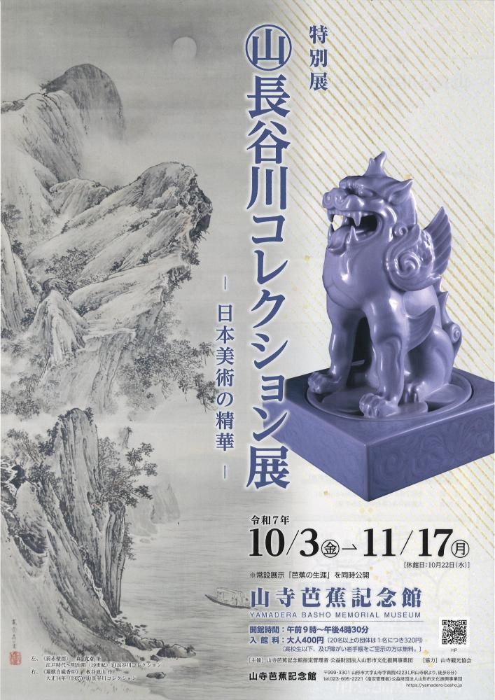 特別展「長谷川コレクション展 ー日本美術の精華ー」出品目録★ダウンロード →https://ssl.samidare.jp/~lavo/basho/box/20251007131711.pdf※山形県指定有形文化財「細雨」は、10月21日(火)までの展示になります。